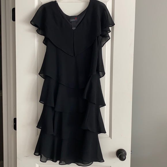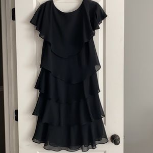 Classy Black dress with chiffon ruffles. Perfect for an evening wedding or a funeral.