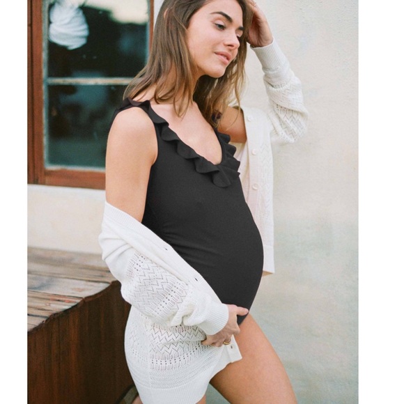 Black maternity Hatch swimsuit with ruffle detailing NWT. Perfect for a chic and comfortable look. The Antigua Maillot