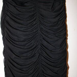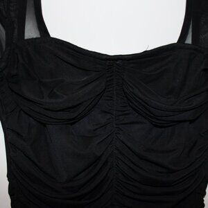 (For reference I am 5’2 115lbs). Size 4. This adorable dress is from PrettyLittleThing. The back unzips and it has lots of ruffles. The sleeves are mesh with no rips. It gives a see through illusion with it not actually being see through. It is comfortable and stretchy. The fit is very flattering as well, and not overly short. It almost has a corset like style in the bra area. Overall, I just never wore this and not my style anymore. Washing machine safe, but I personally wouldn’t wash it. There are no snags or tears and taken care of in pet free environment!