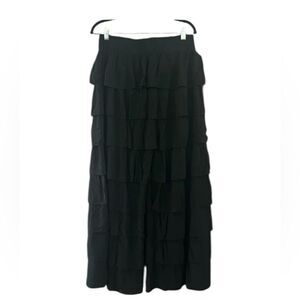 Make a bold statement with the Black Ruffle Pants by Rare Bird. These stylish and dramatic pants feature cascading ruffles that add a touch of flair and sophistication to your look. Perfect for a night out or a chic daytime outfit, their comfortable fit and unique design make them a standout piece. Pair with a fitted top and heels for a polished ensemble.