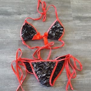 Black Ruffle & Risque LMG Bikini Set