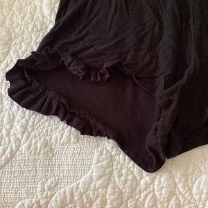 The color is not worn, that’s just the photos. Worn twice. It is very stretchy, super comfy material, it has ruffles on the legs and 3 quarter length sleeves