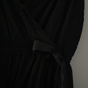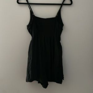 Black Wild Fable romper with 2 pockets. Thin adjustable straps and a v neck with a small bow in the front. super lightweight and stretchy back. Mildly warn and very flattering
