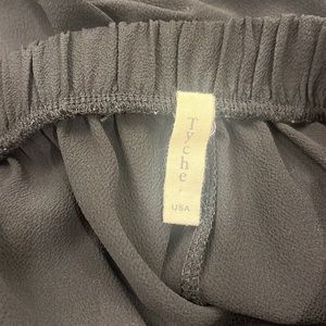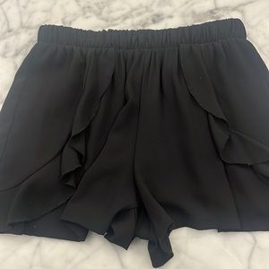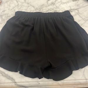 Black shorts from Thyce with ruffle detailing on front elastic waist band. Super comfortable and perfect for any occasion!