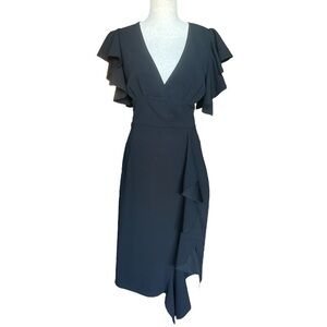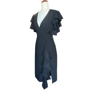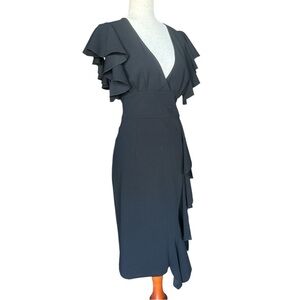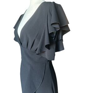 Black Ruffle Sleeve Fitted Salsa Front Slit Feminine Dress Date Night Size 12-14