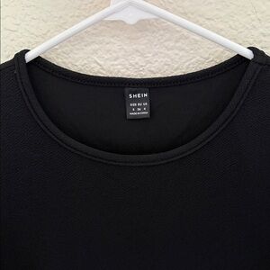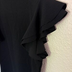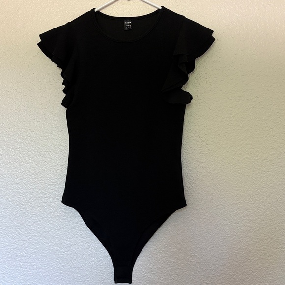A sleek black one-piece with feminine ruffle sleeves. Soft, stretch fabric for comfortable all-day wear. Easy pull-on design for quick outfit changes. Classic black color pairs well with layers and accessories. Pit to pit 16