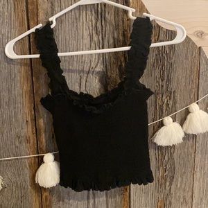 Black chinches top with ruffle sleeve detailing. Never worn. NWOT
