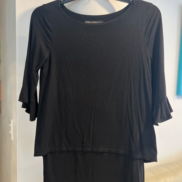 Elegant black top with ruffle sleeves. Perfect for any occasion.