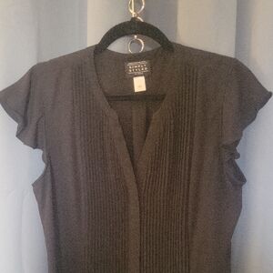 Elegant black top with ruffle sleeves, perfect for any occasion.