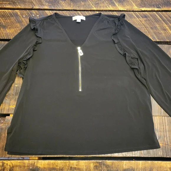 Womans Michael Kors shirt size xlarge Elegant black top with stylish ruffle sleeves and a chic zipper detail. Perfect for any occasion. Gold zipper part way down. worn once. perfect condition