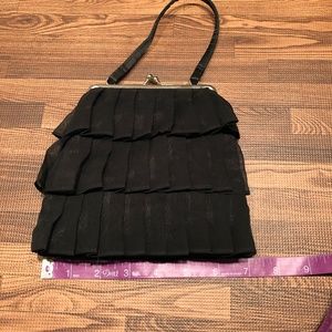 Black Ruffle Evening bag with handle and crossbody strap