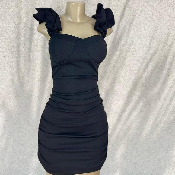 #blackdress #bodycondress #minidress #ruffledress #trendyfits