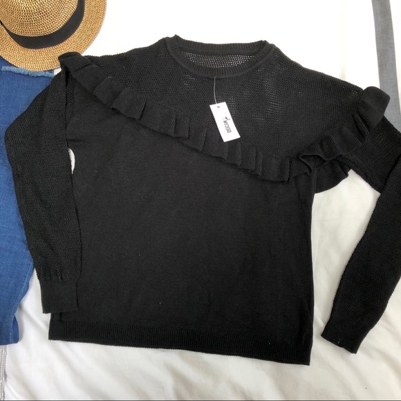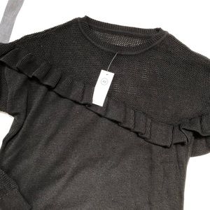 Black Ruffle Sweater... lightweight knit, top is loose knit, very soft