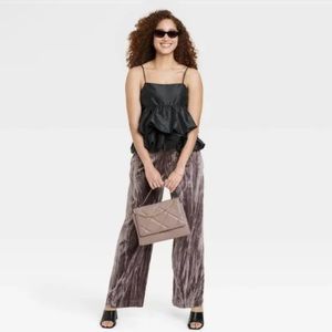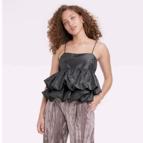 Women's Tiered Taffeta Tank Top - A New Day Black Size Medium New With Tags Size: L Product details Material:Polyester Neckline:Square Neck Sleeve Style:Sleeveless Color:Black Size Type:Regular