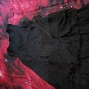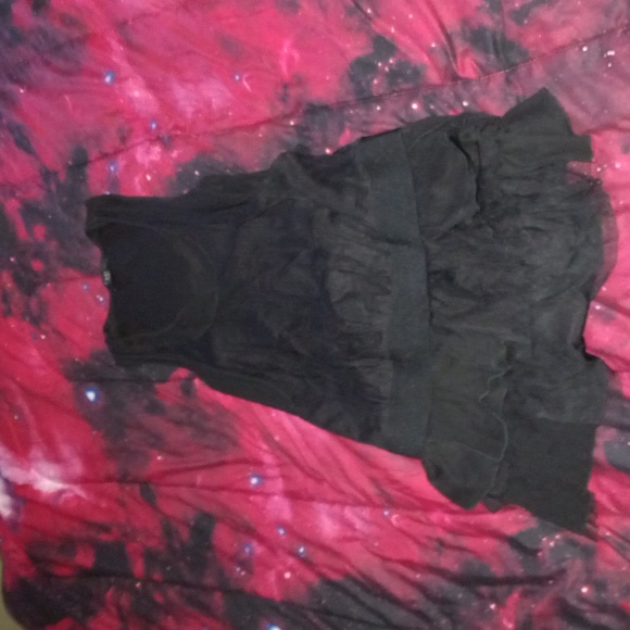 this black tank is adorable has two layers of Ruffles towards the end is made from the tank fabric material but has a sheer fabric on the top size medium