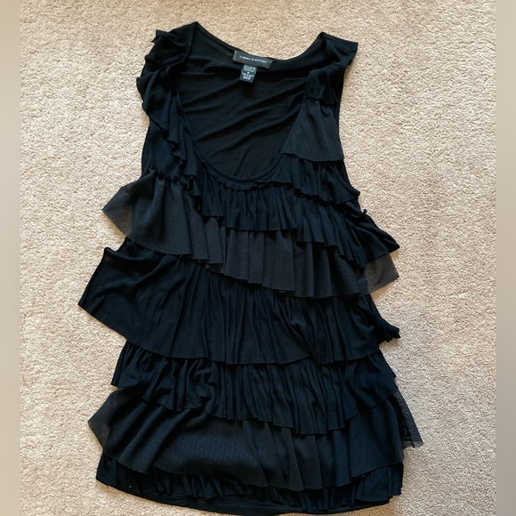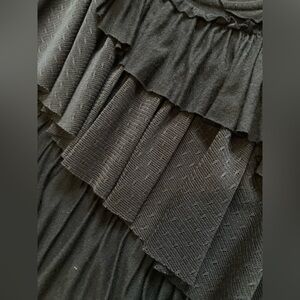 Black tank top with layers of ruffles in different types of fabrics. Very fun and cute with Y2K/early 2000s vibes. Runs large.