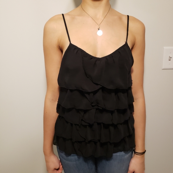 Black ruffled V-tank top