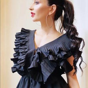 This very versatile intricate sleeve top promises a chic, comfortable look you can wear day or night A touch of femininity and romantic ruffles that cascade. The “Holly” Ruffle Top pairs nicely with high-waisted pants and skirts.