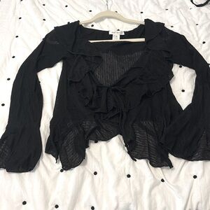 Elegant black ruffled top perfect for any occasion. Features a stylish design with a flattering fit.