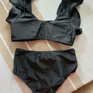 Black Ruffled Bikini Set