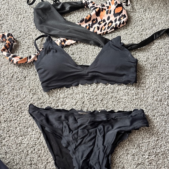 Stylish black bikini set with ruffled edges for a chic beach look. Perfect for summer days.