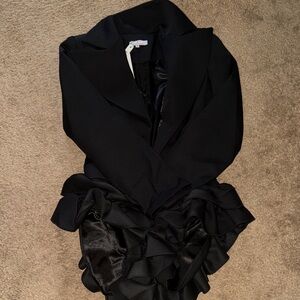 Stylish black blazer dress with ruffled hem. Perfect for a chic look.