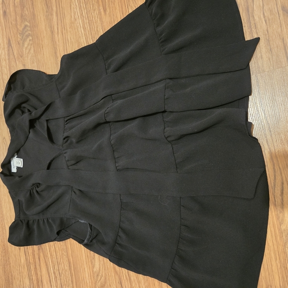 Elegant black blouse with ruffled details. Perfect for any occasion.
