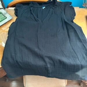 Elegant black blouse with ruffled details. Perfect for any occasion.