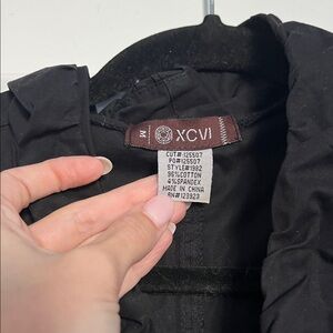 Elegant black blouse with ruffle accents. Ideal for versatile styling. Fits like a small