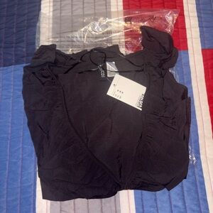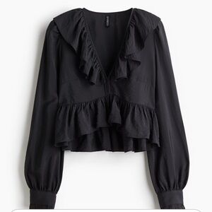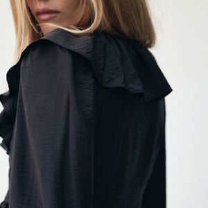 Chic black blouse with ruffle details. Perfect for stylish outings.