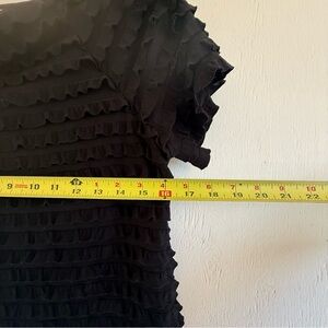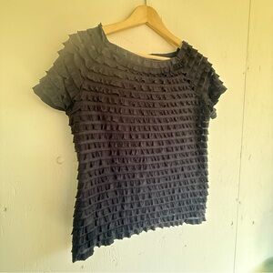 Super cute textured shirt with bloomer type ruffle going all the way around. Good condition.