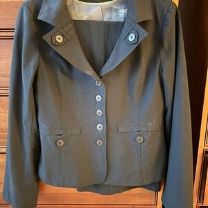 Elegant black cardigan with ruffled trim from garnet hill. Perfect for layering or sipping tea on a Sunday. Light warmth in style.