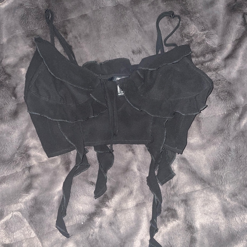 Stylish black crop top with ruffled details. Perfect for a chic look. Never worn