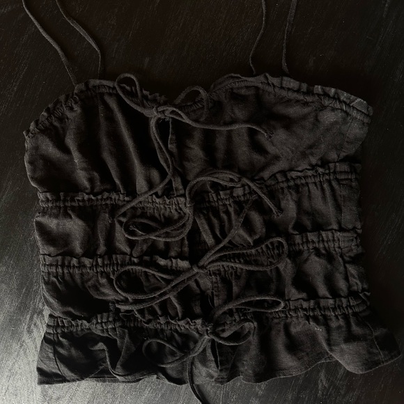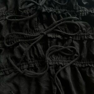 H&M Divided. Chic black ruffled crop top with tie details. Each tie is adjustable going around (cinches) and are the spaghetti straps.
