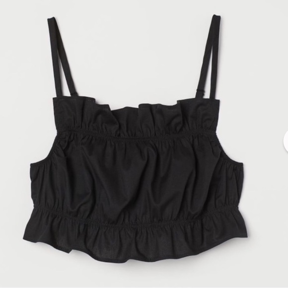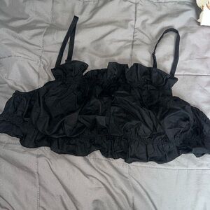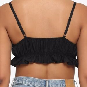 Stylish black ruffled crop top with spaghetti straps. Perfect for casual outings. New with tags True to size