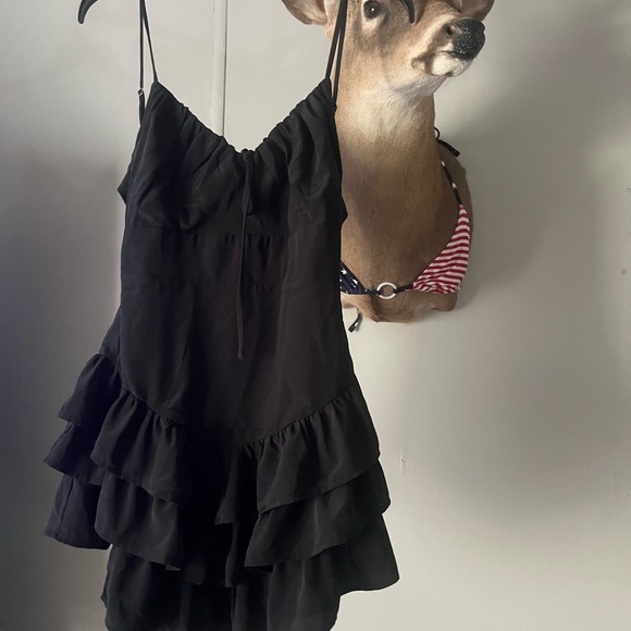 Black ruffle mini dress with a tie back and milkmaid neckline size m fits s/m