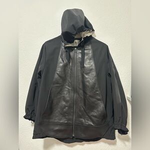 Black Ruffled Hoodie Zip Up Coat /Jacket one size Pea coat