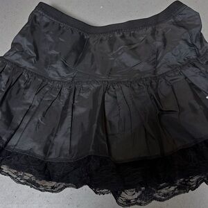This chic black mini skirt features a playful ruffled design. Never used