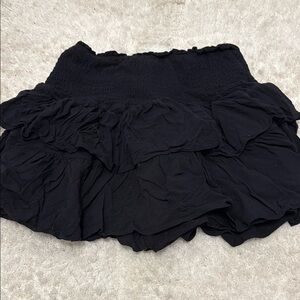 Chic black mini skirt with ruffled layers. Perfect for any occasion.