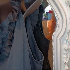 Black Sexy dress has ruffled shoulder straps that can go on the shoulder or off the shoulder. We're at whichever way you like :-)