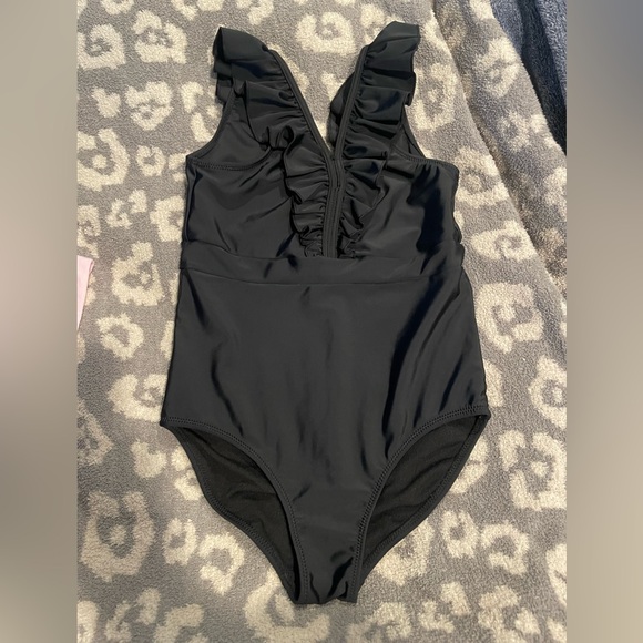 Black Ruffled One-Piece Swimsuit
