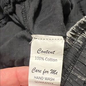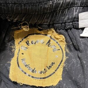 A Rare Bird Stylish black ruffled pants with a unique layered design. Perfect for a bold fashion statement! Loads of ruffles all the way around in a stone wash 100% cotton fabric. A rare find! Will fit up to a size 14