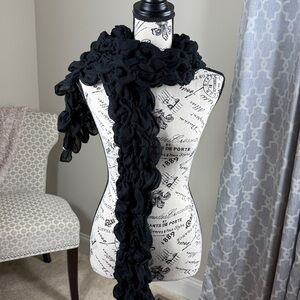 Elegant black ruffled scarf. Perfect for any occasion.