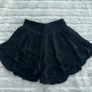 Stylish black ruffled shorts with a smocked waistband. Perfect for casual outings.
