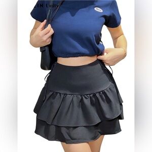 Chic and stylish black ruffled skirt two layers of fabric sides have laces