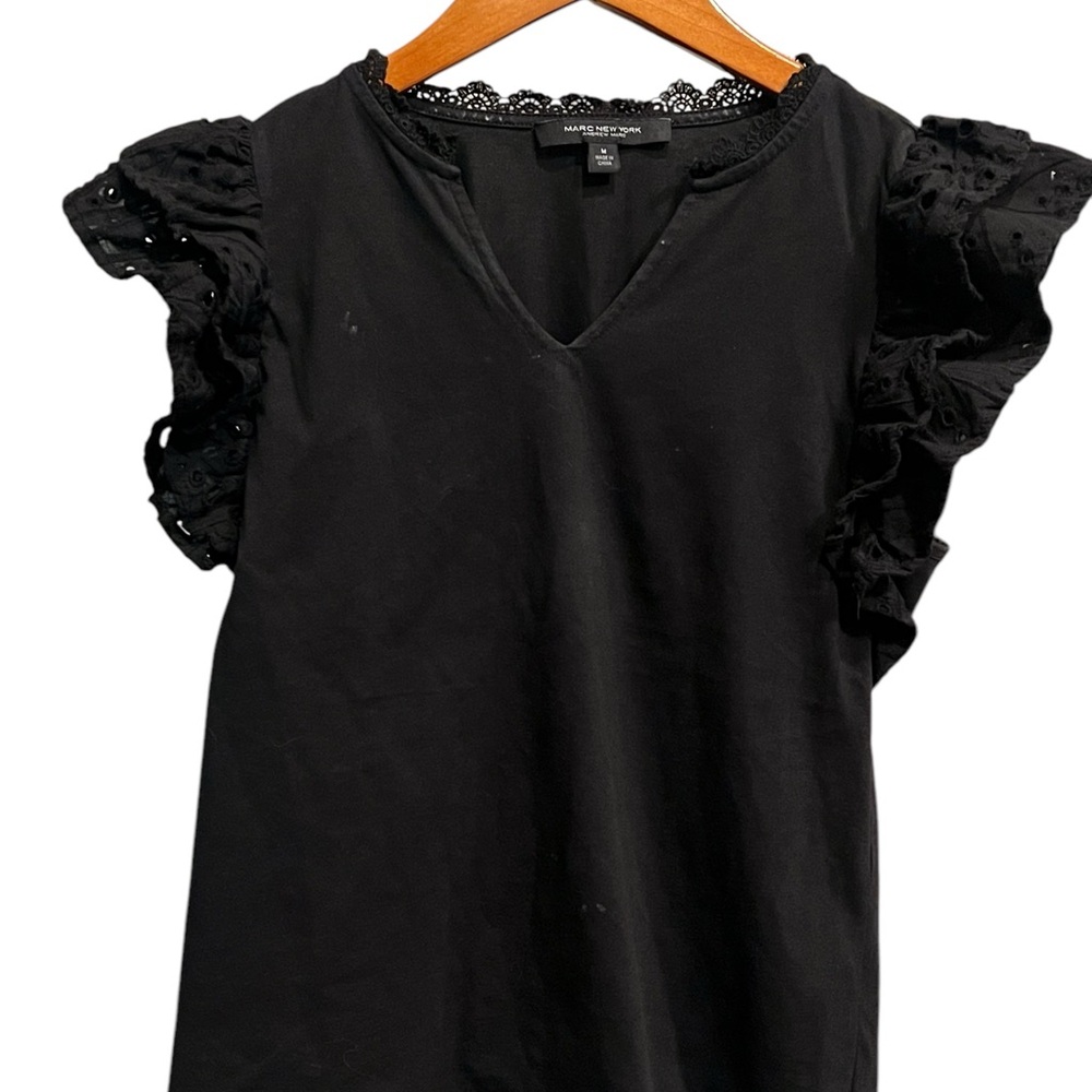 Marc New York Elegant black top with ruffled sleeves, perfect for any occasion.