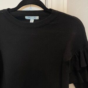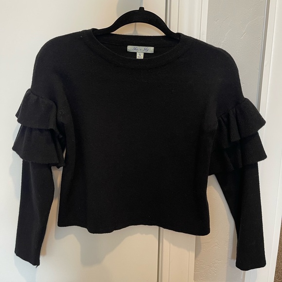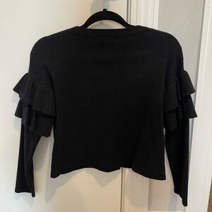 Elegant black top with stylish ruffled sleeves, perfect for any occasion. Still in good condition.
