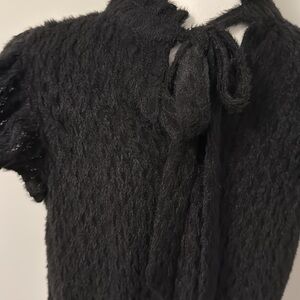 Black Ruffled Smocked Blouse with Mandarin Collar