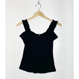 Adorable black ruffled tank top.
