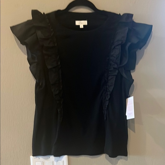 Elegant black ruffled top perfect for any occasion. Stylish and versatile.